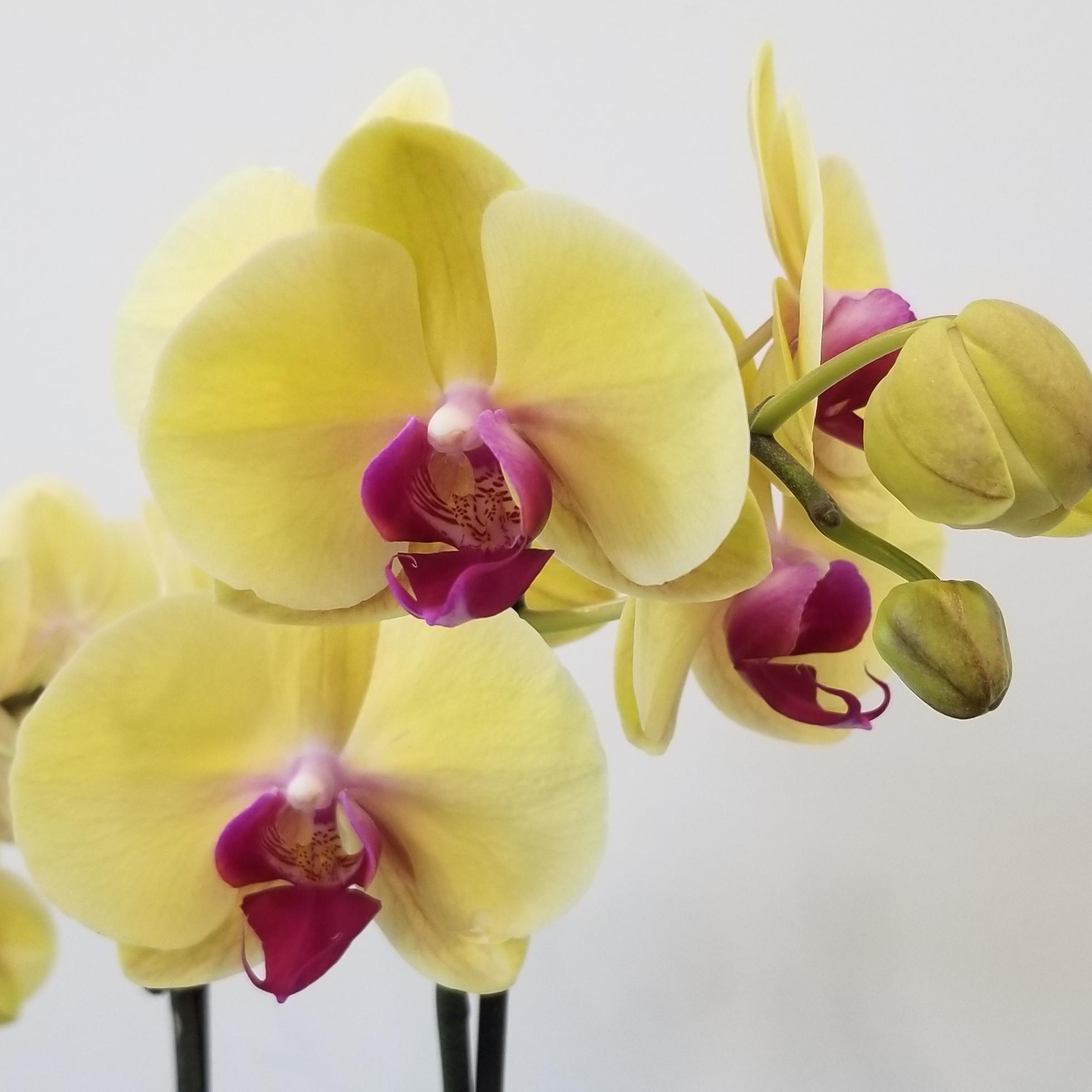 Orchid White Blooms and Green Plants in Deco Ceramic White 6″