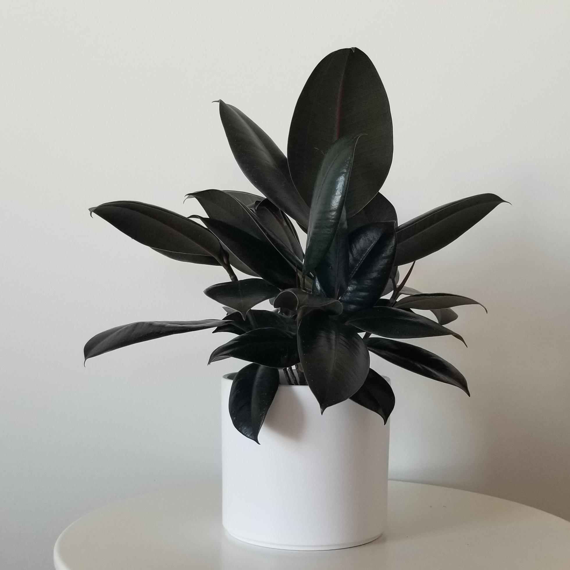 Office Plants – Ficus Elastica Burgundy in a decorative ceramic pot, white, 6″ diameter