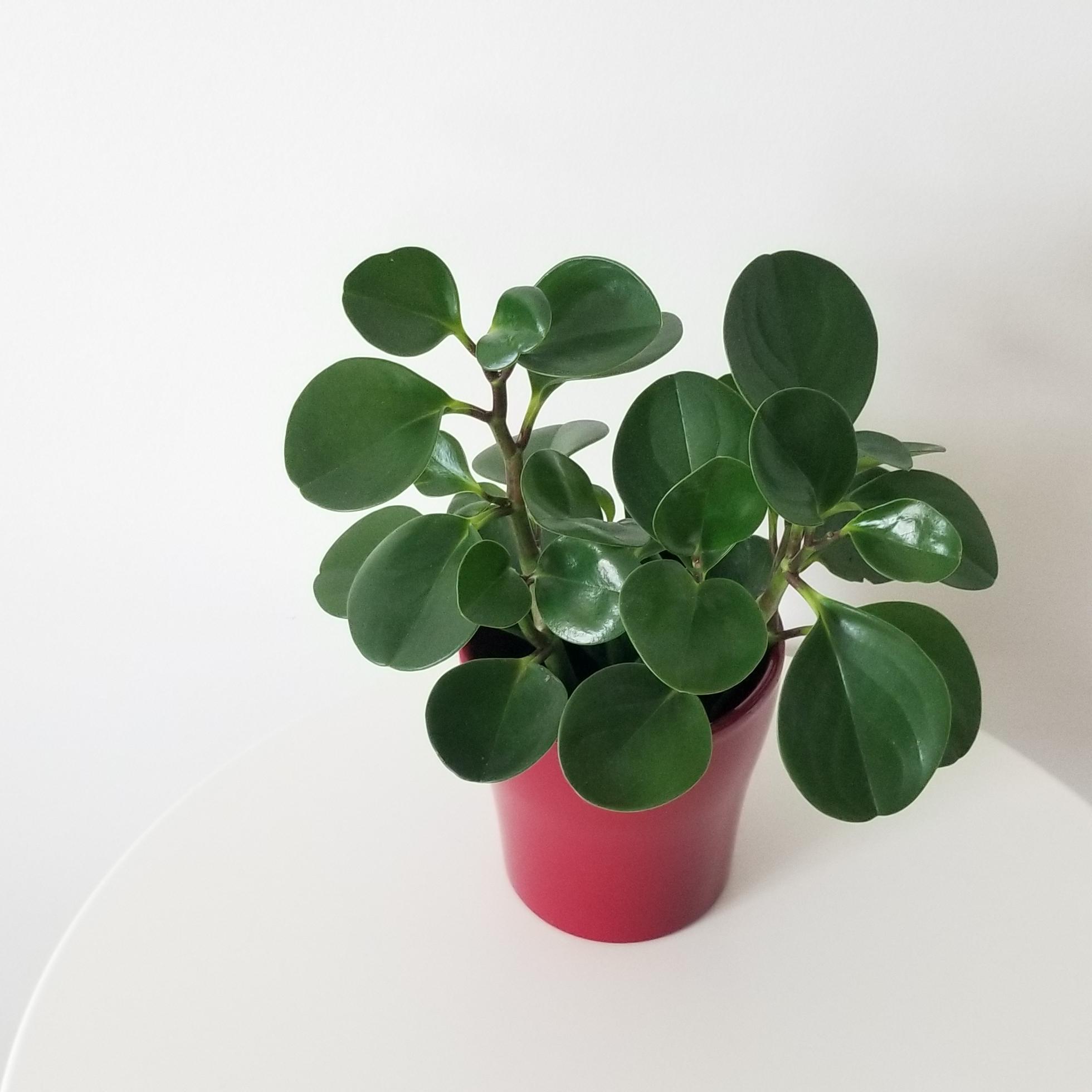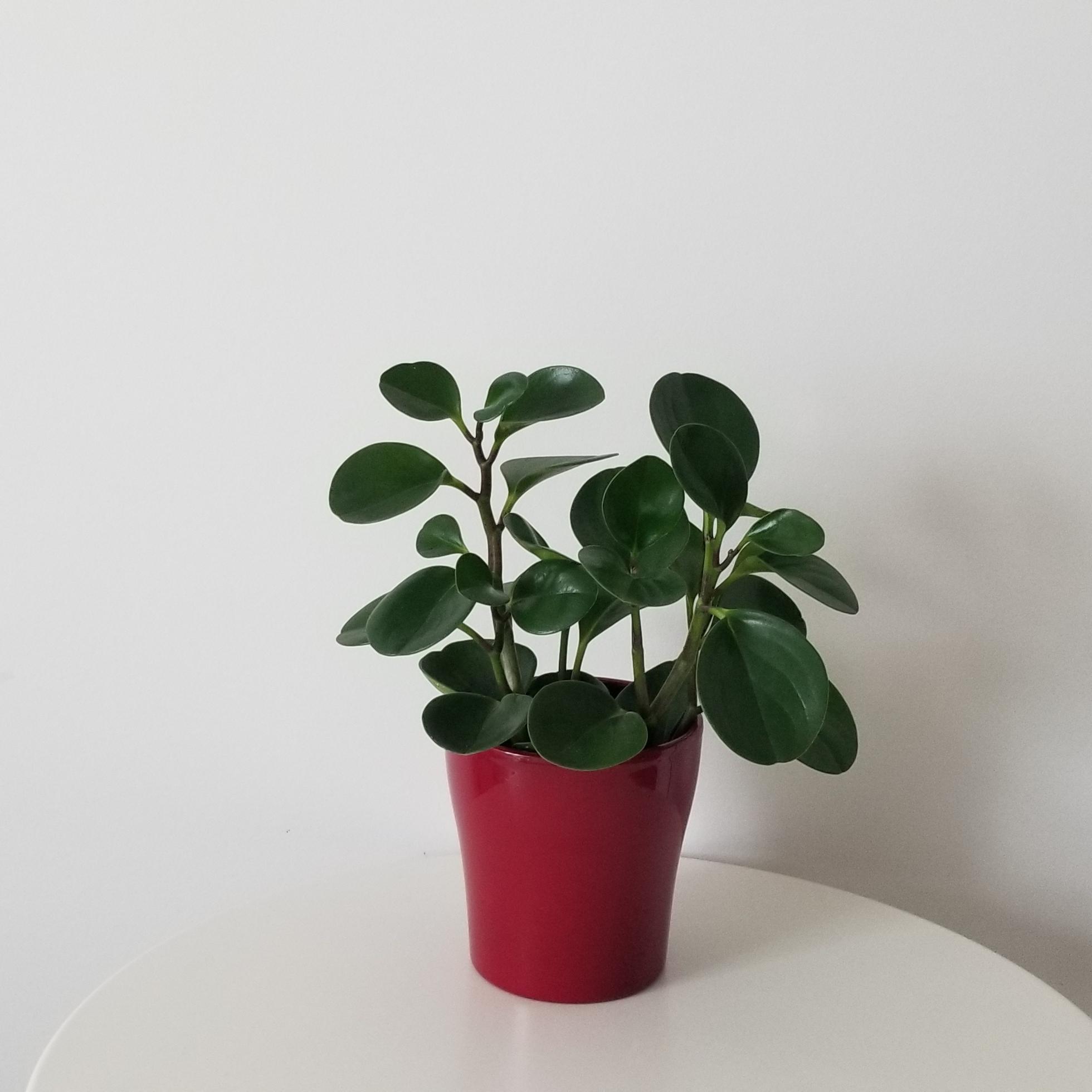 Peperomia obtusifolia green in a decorative ceramic container, red, 5″